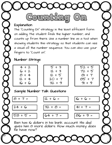 Mental Math Strategy Counting On Lesson Worksheet Teaching Resources